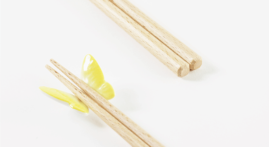 ふわり舞い降りた色とりどりの蝶の様に食卓を華やかに彩ります。ブナの箸を合わせると、小枝で羽を休めているかのよう。テーブルにそのまま並べて置きたくなる愛らしいデザインは、あなたの生活にそっと寄り添います。