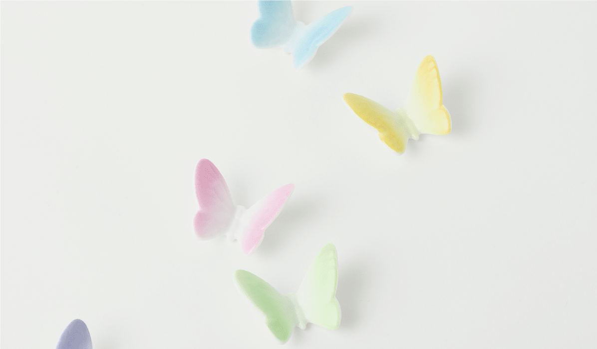焼き物のまち瀬戸の職人が一つひとつ丁寧に手吹き彩色を施した蝶の形をした箸置きです。
