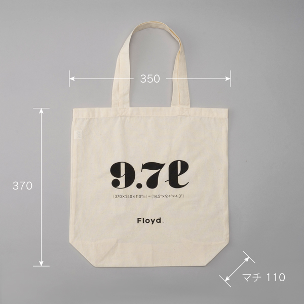 9.7Lと容量がプリントされた Floyd オリジナルのコットンバッグ。