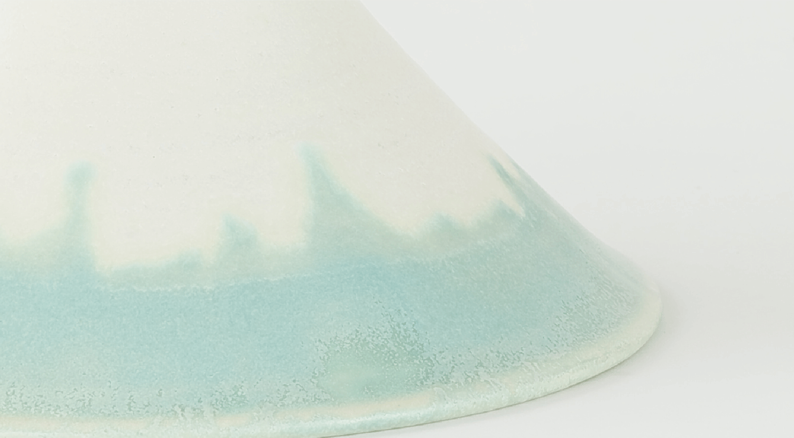 富士碗は、長崎県波佐見の陶窯で出会ったターコイズブルーの釉薬から誕生しました。毎日違った表情を見せてくれる富士山と同じように、釉薬の垂れ具合もそれぞれ異なり、ひとつとして同じものはありません。