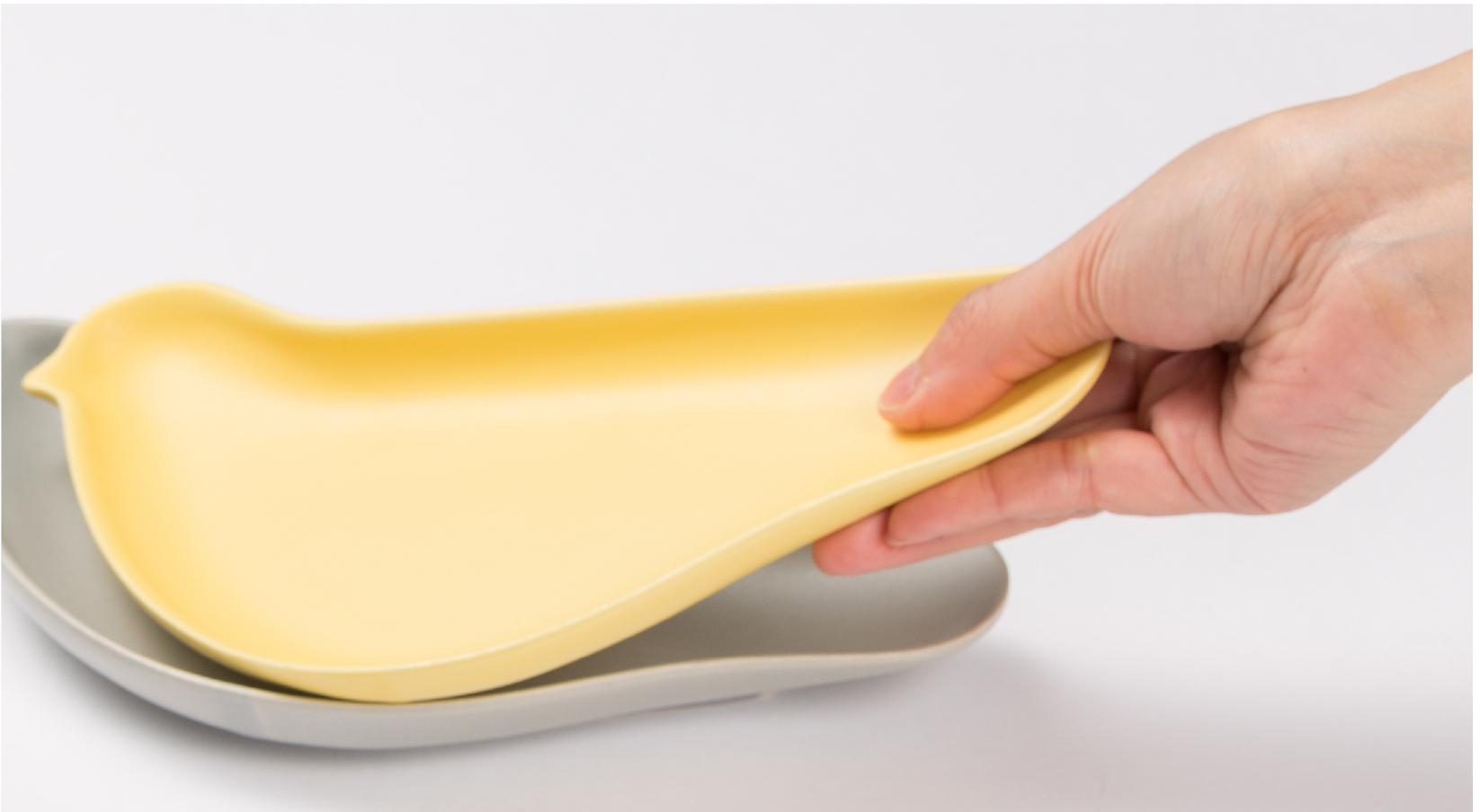 手に取りやすく、お箸やカトラリーが綺麗に沿うように少し尾羽が上がっています。
