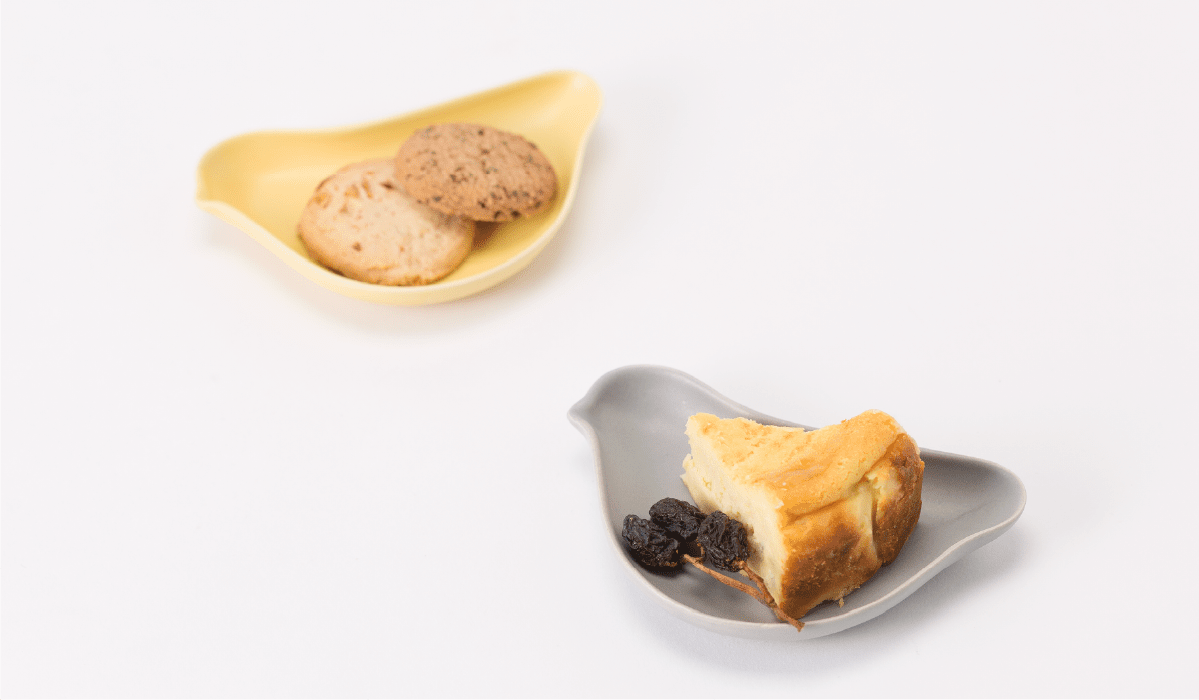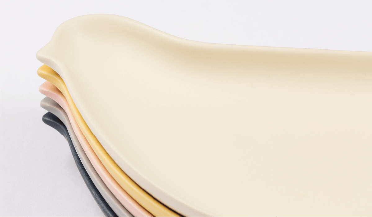 高台が羽の形になっているのも隠れたポイントです。さらっとした質感の釉薬は、手に触れた時に優しく、マットな色合いは料理を引き立ててくれます。